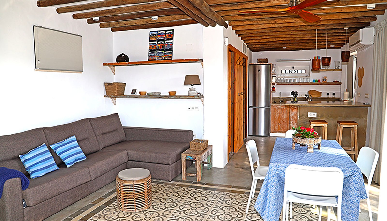 The casita is 50 metres from the main house and can be rented separately or together with the main house. This is also newly refurbished with reclaimed materials and contains an open plan kitchen / living / dining area with oven, microwave and dishwasher. We also give customers the option to block the rental of the casita for a small fee if they don’t need the extra rooms but wish to have the plot and facilities just to themselves though there’s lots of room and privacy between the two.
