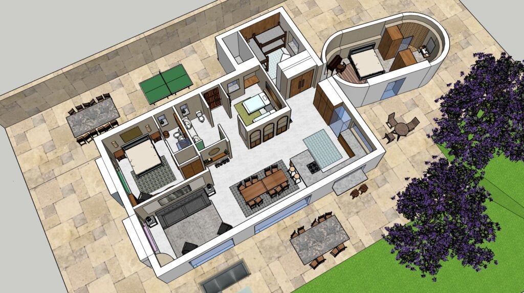 Terraces at the front and side of the main house and courtyard at the back of the house. Large terrace around the casita as well.